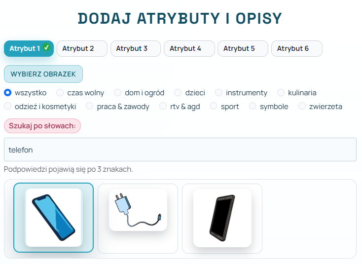Następnie przypisz do wybranego atrybutu charakteryzujący go tekst: