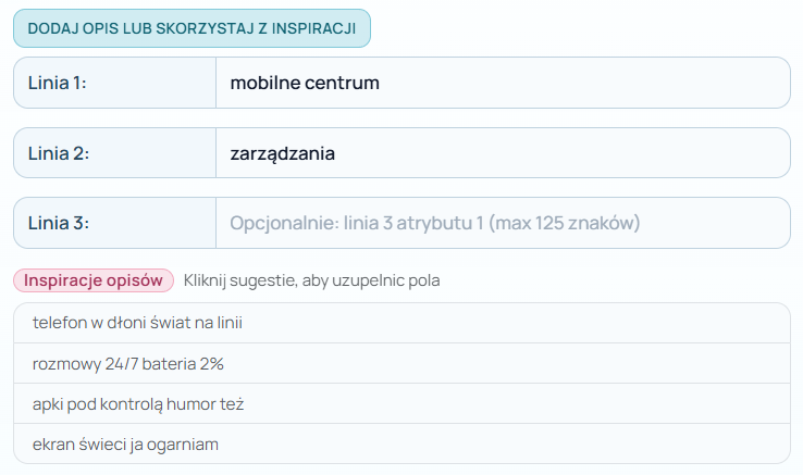 → możesz skorzystać z gotowych inspiracji - kliknij w wybraną, by uzupełnić pola