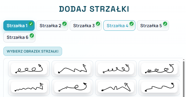 Możesz dokonać korekty w położeniu strzałek za pomocą suwaków: