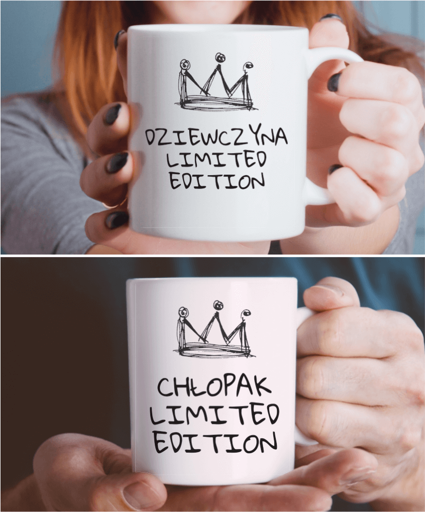 Kubki z nadrukiem dla szalonej pary, która spogląda na siebie i świat z dystansem. Ten zestaw to idealny prezent dla pary, na urodziny, na Walentynki, rocznicę i ślub.