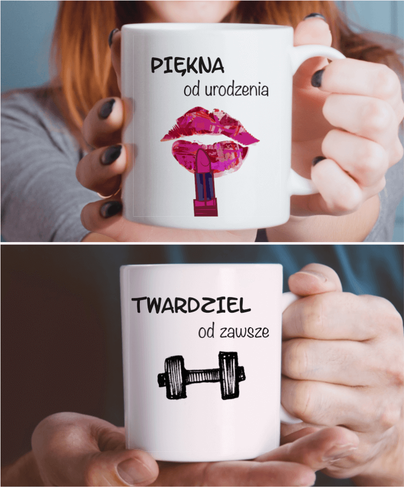 Kubki z nadrukiem dla szalonej pary, która spogląda na siebie i świat z dystansem. Ten zestaw to idealny prezent dla pary, na urodziny, na Walentynki, rocznicę i ślub.