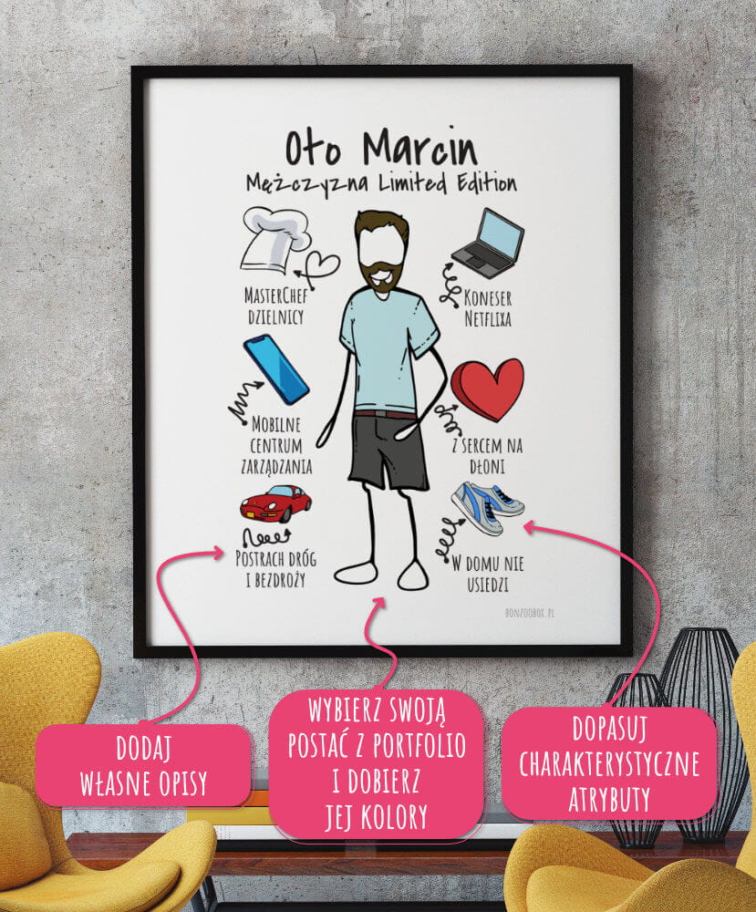 Produkt dzięki możliwości pełnej personalizacji idealnie sprawdzi się jako POMYSŁ NA KREATYWNY PREZENT NA KAŻDĄ OKAZJĘ - prezent dla szefa, prezent urodzinowy, prezent dla niego i dla niej, prezent dla męża i żony, prezent dla taty i mamy, prezent dla dziadka i babci, prezent dla przyjaciela, prezent dla kolegów z pracy, prezent na święta, prezent dla dzieci lub miłą niespodziankę. "To prezent, który chwyta za serce i wywołuje uśmiech".