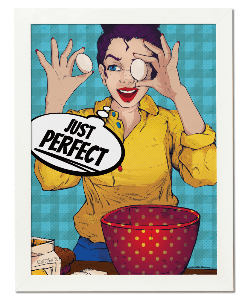 Plakat sprawdzi się jako wyjątkowy dodatek do kuchni i niepowtarzalna dekoracja wnętrza, a dzięki możliwości personalizacji - jako oryginalny pomysł na prezent. Dla wszystkich osób, które lubią designerskie wnętrza i patrzą na świat oraz siebie z dystansem.
