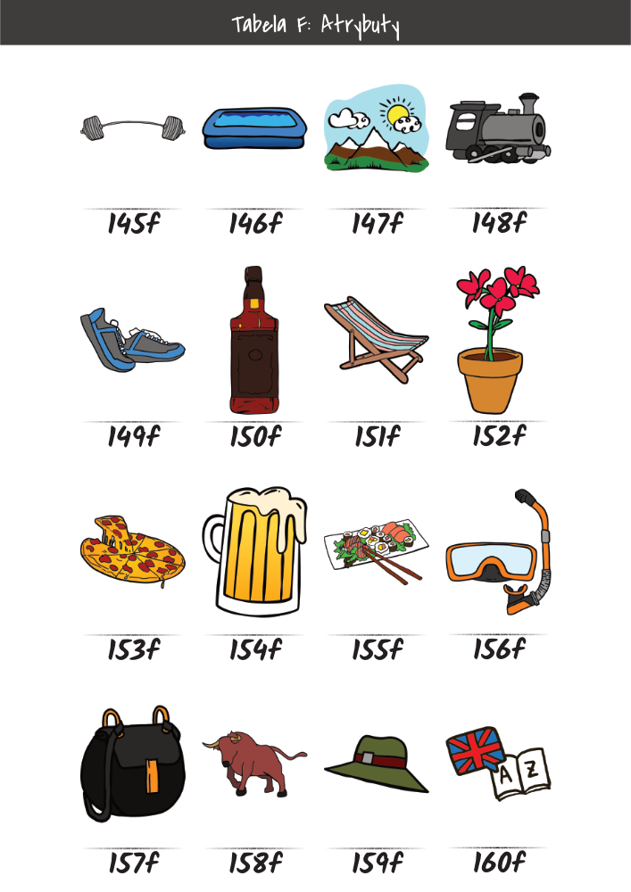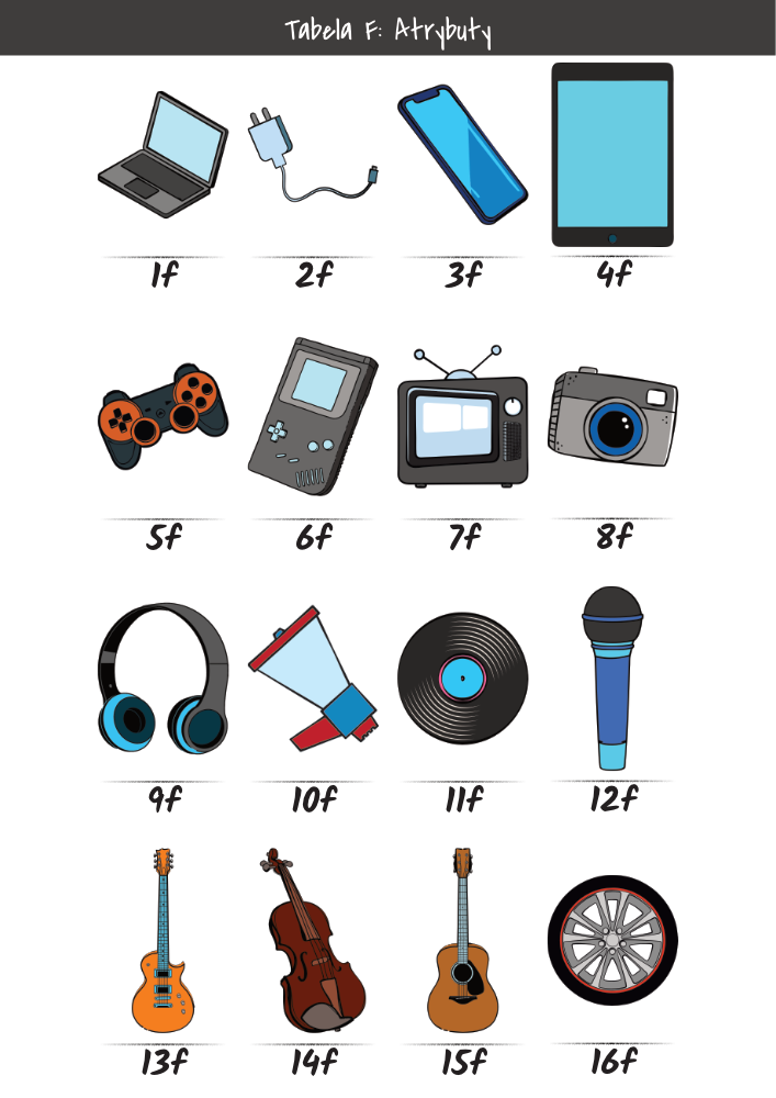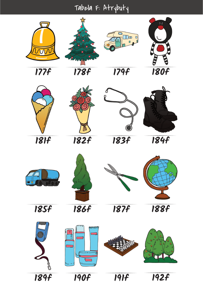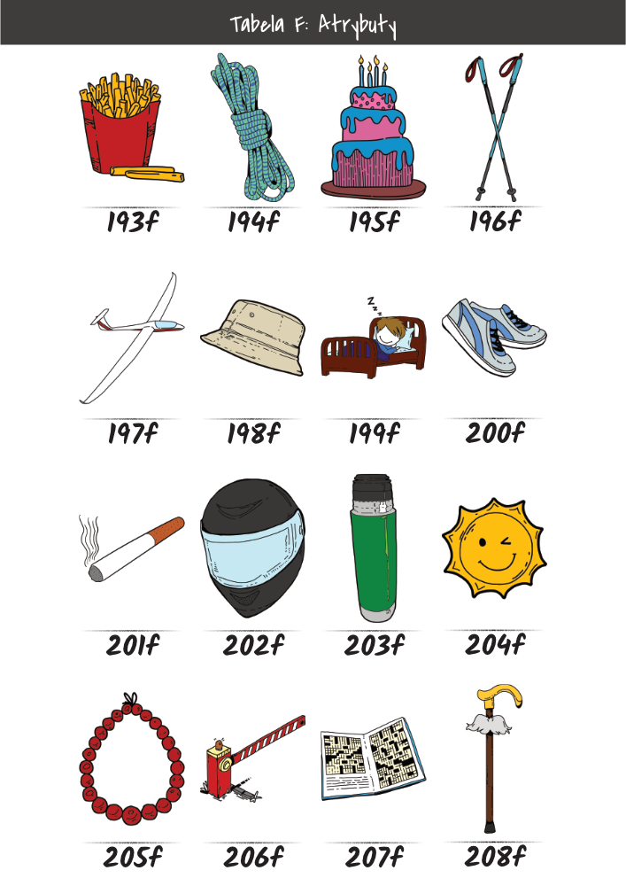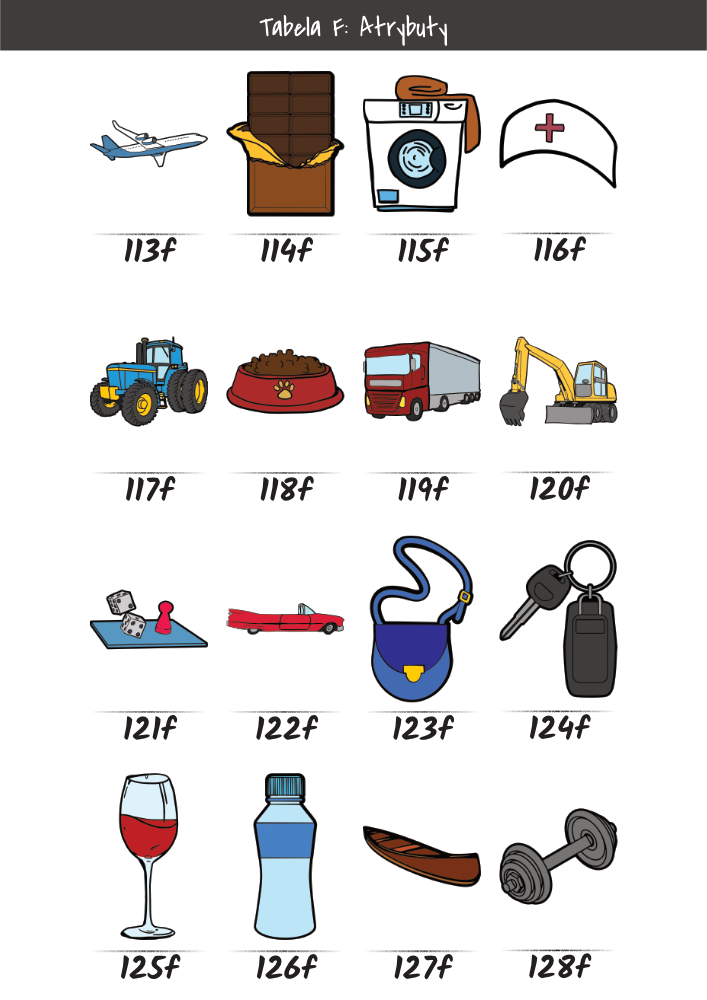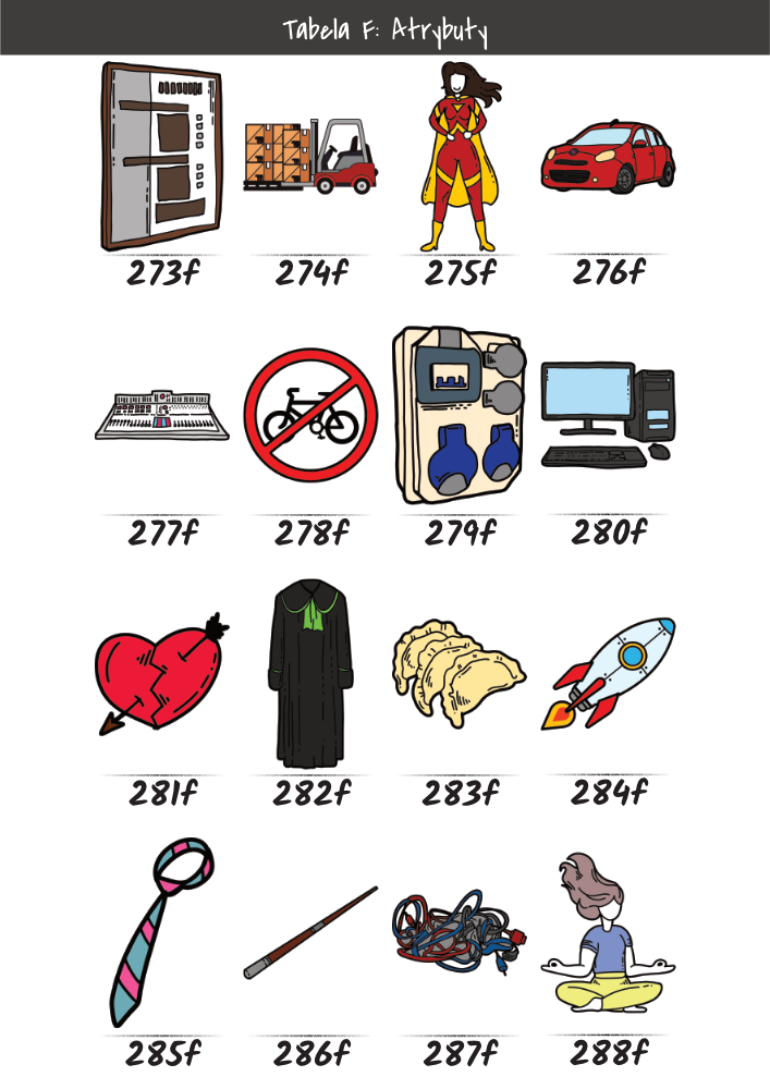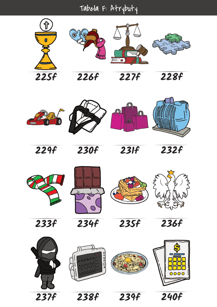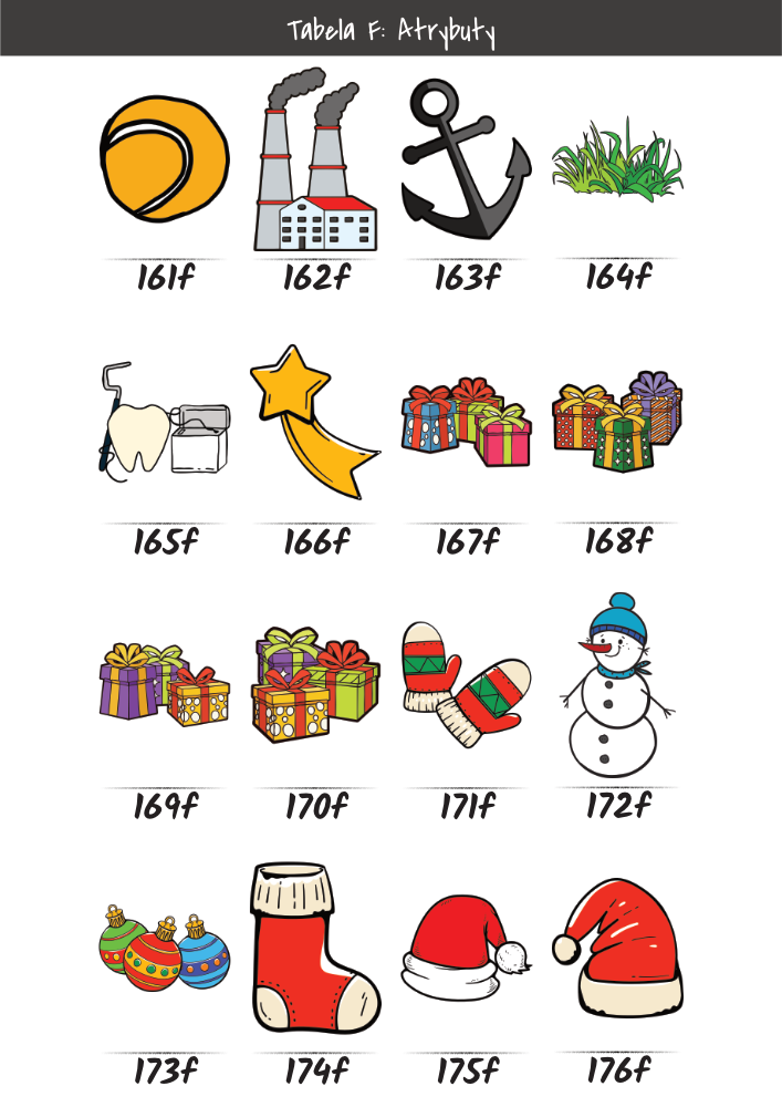 | MĘŻCZYŹNI | KOBIETY | DZIECI | PUPILE | ATRYBUTY | KOLORY |