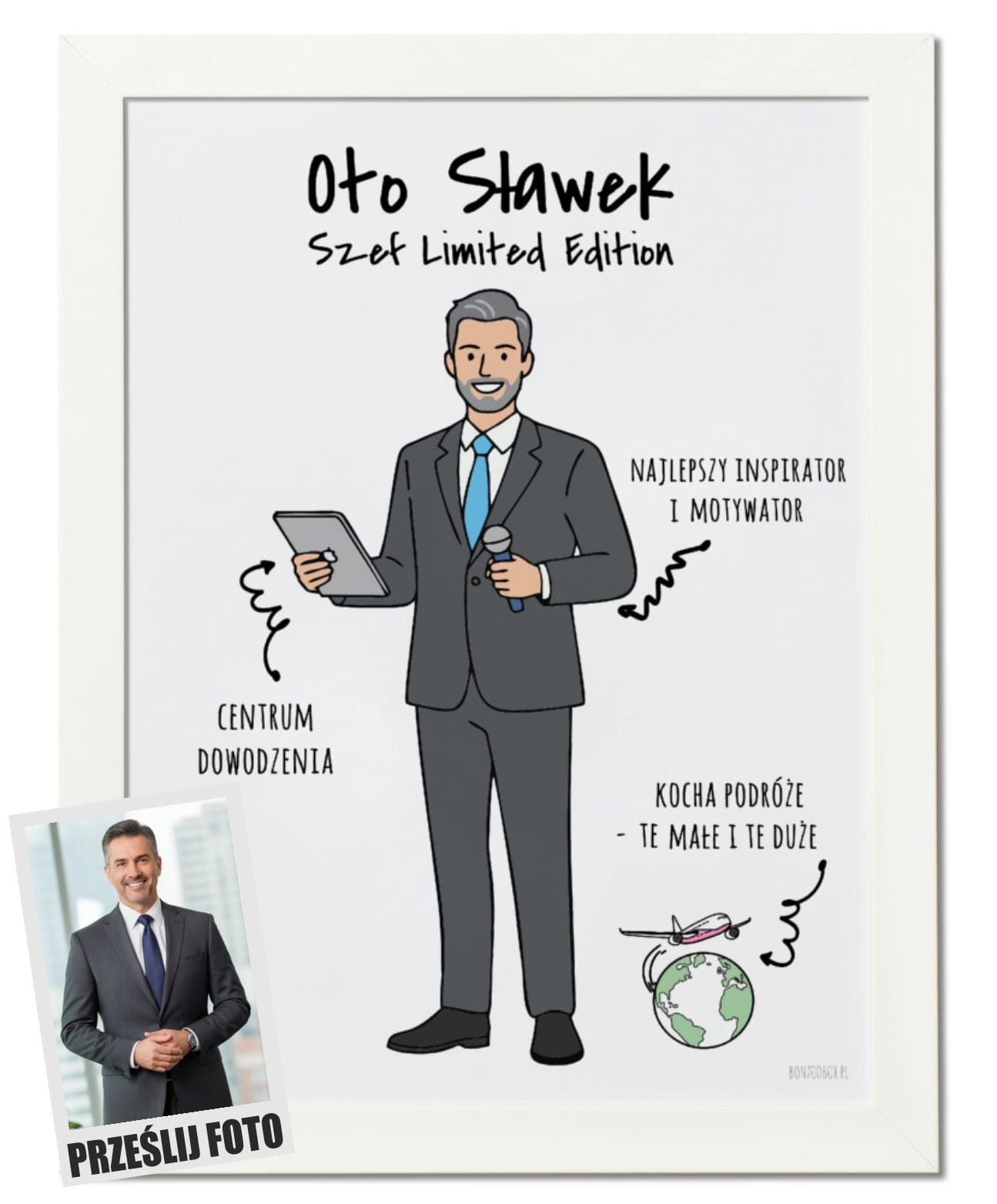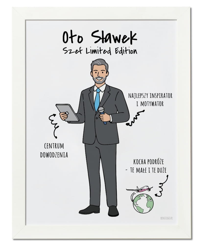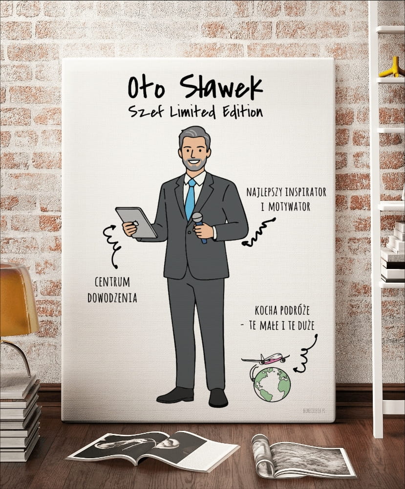 Plakat personalizowany na prezent dla szefa tworzony z własnej podobizny